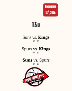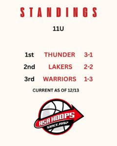 The second weekend of ASA Winter League action is officially in the books, and it did not disappoint. From buzzer-beaters to breakout performances, December 13th delivered a full slate of competitive games across every division. This recap brings all of the standings and final scores together in one place so families can easily follow how each team is progressing week to week.